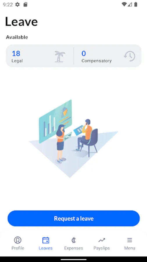 In the leaves section, you can access different options, make new requests, add descriptions and review the status any time you want.