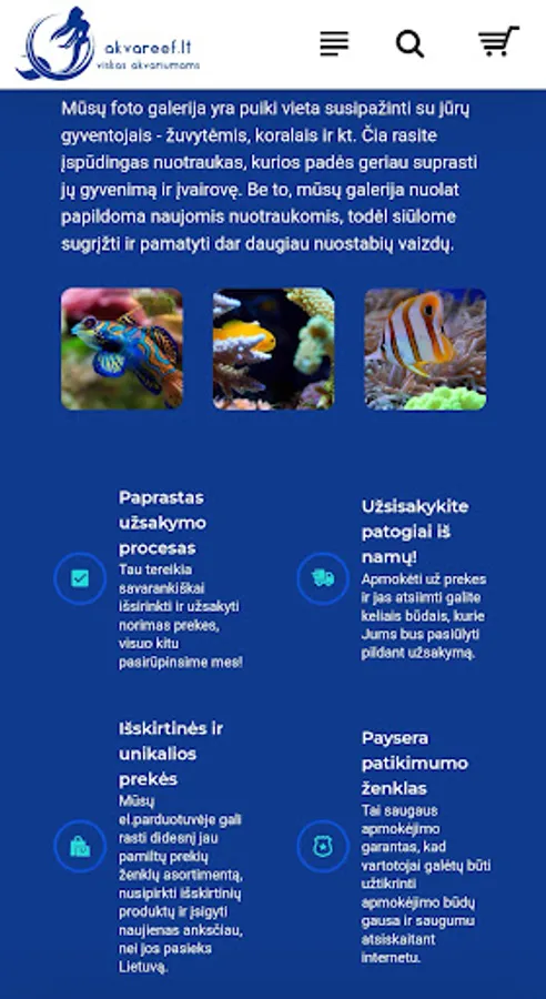 Akwareef.lt is an online store where you will find a large selection of high-quality and well-known brand products for marine and freshwater aquariums. Here you can not only buy a variety of aquarium supplies, but also a variety of fish and coral species, which means that in our store you have everything you need to create the aquarium of your dreams.