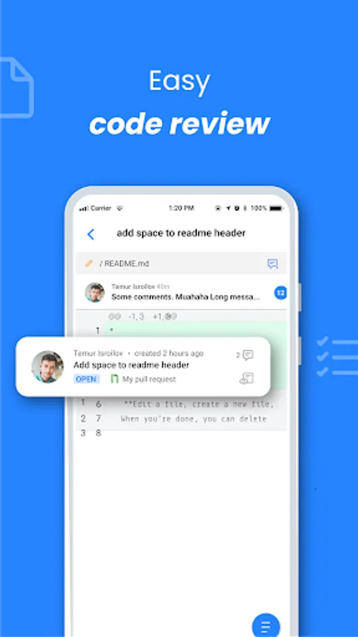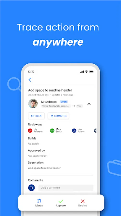 • View, approve, decline, request changes, and merge Pull Requests
