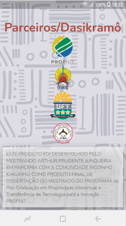 Fully developed with the participation of the Xerente community in the state of Tocantins, the game has all the indigenous cultural characteristics of its people, such as colors, songs and illustrations. The application was born from a master's thesis project of a student at the Federal University of Tocantins-UFT and had the support of FUNAI and of course, with the authorization of the chief and all members of the community.