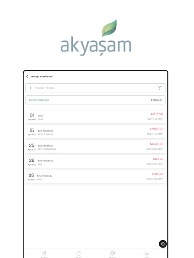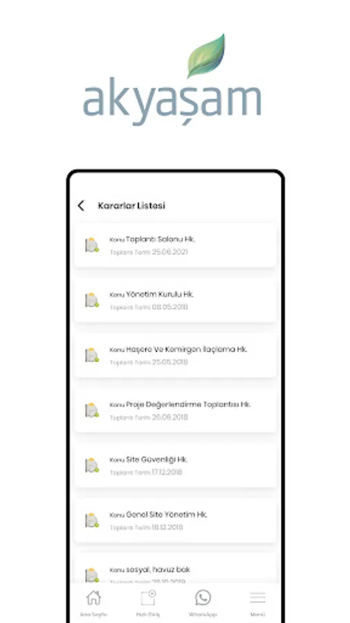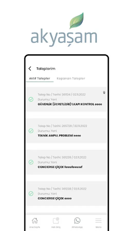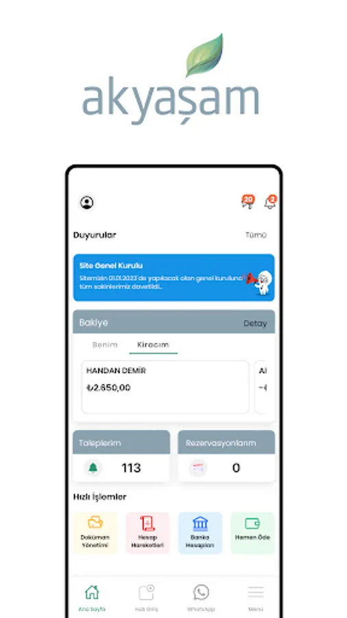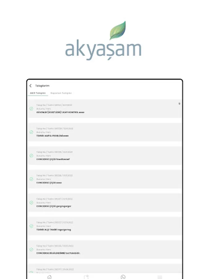 Akyaşa Service Site Management, Office and Shopping Center Residents are things you can do through the mobile application;