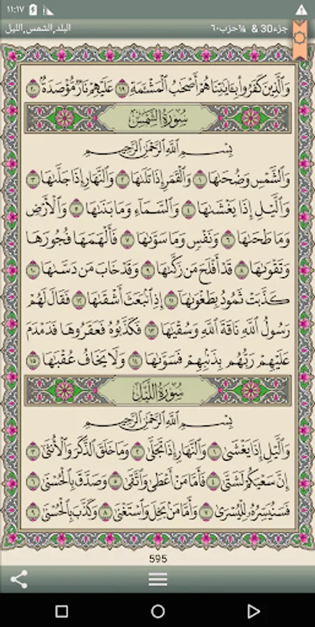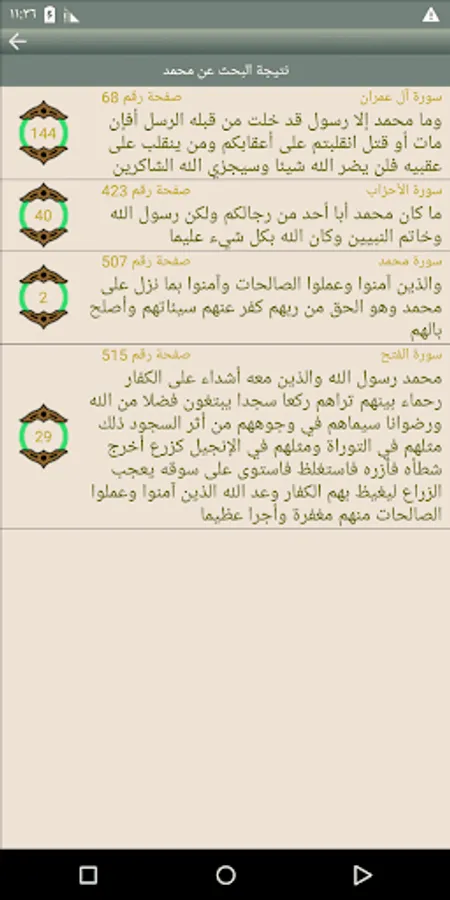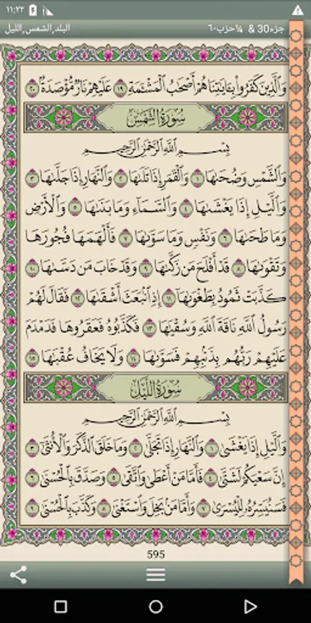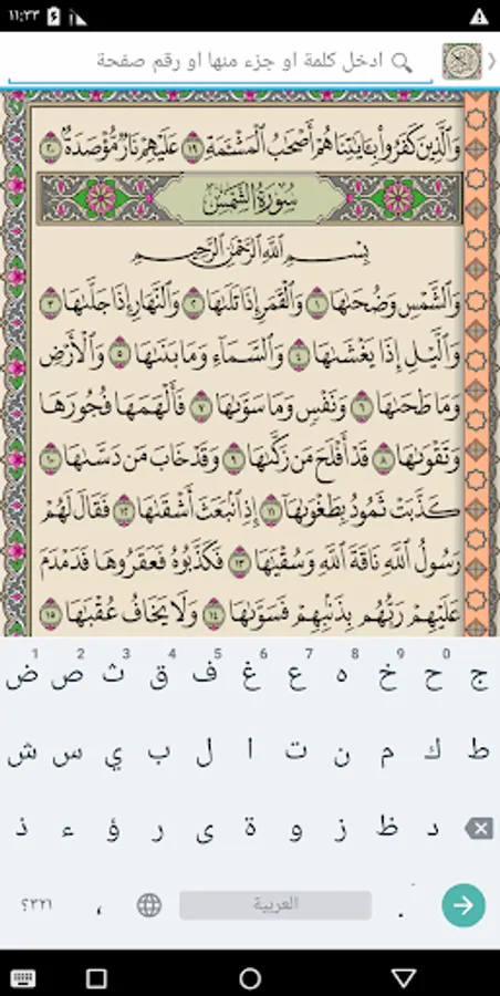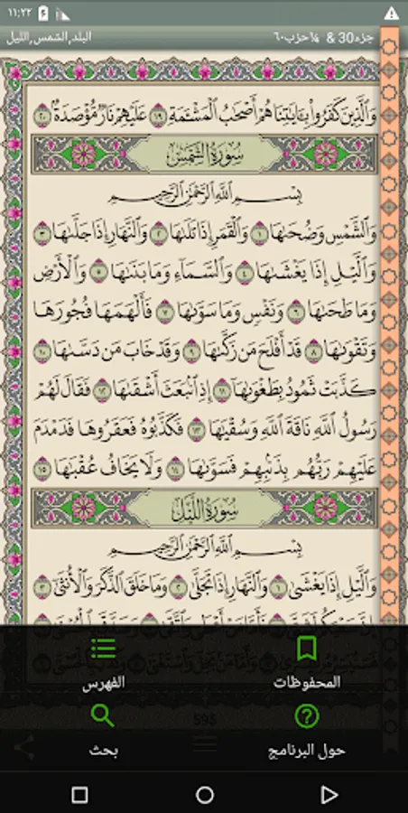This is a program for browsing the images of the Holy Qur’an. I did this program to work on smart devices that work on the Android operating system to facilitate reading and browsing, and I added some features such as The feature of saving pages for reference, and the feature of searching for a word or part of a word present in the Qur’an with the display of search results, and I added several indexes, including an index for the surahs of the Qur’an, an index for parts of the Qur’an, and an index for parties of the Qur’an.