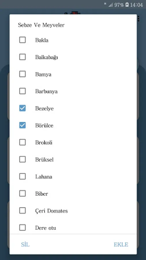 The shopping list application presents many defined products in categories. You can register the product you want by marking it.