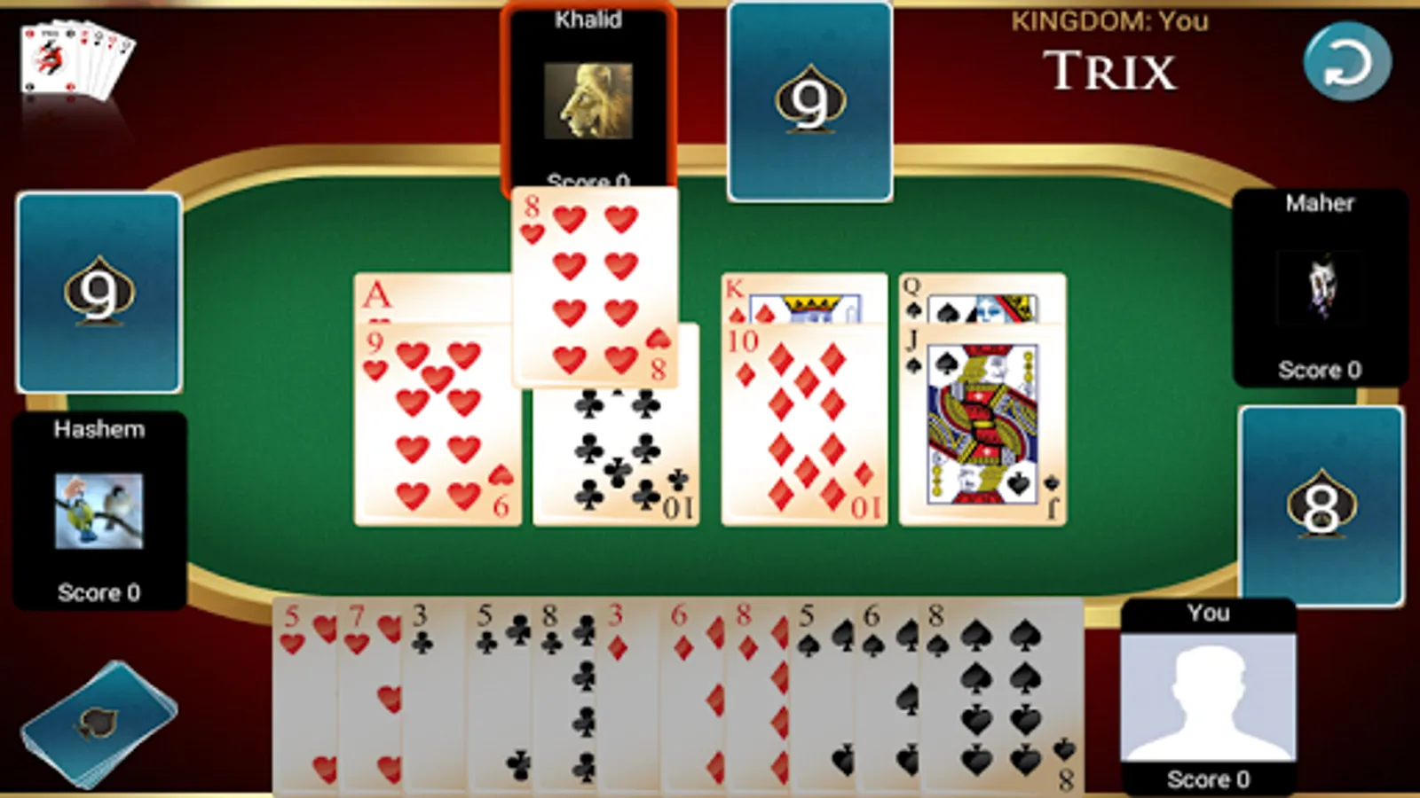 Trix, pronounced Tricks or Trex, and also known as Ticks, is a four-player Middle Eastern card game. Similar to the European game of Barbu, Trex takes on a cycle style in which there are four cycles with each cycle consisting of five games. Each cycle is called a "kingdom" in reference to the fact that in each cycle one player (the King) determines which contract to play in each of the five games.