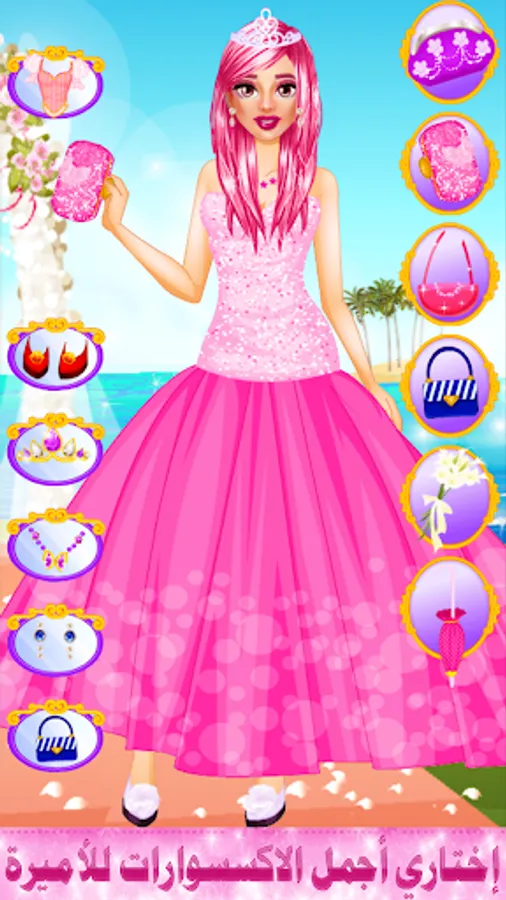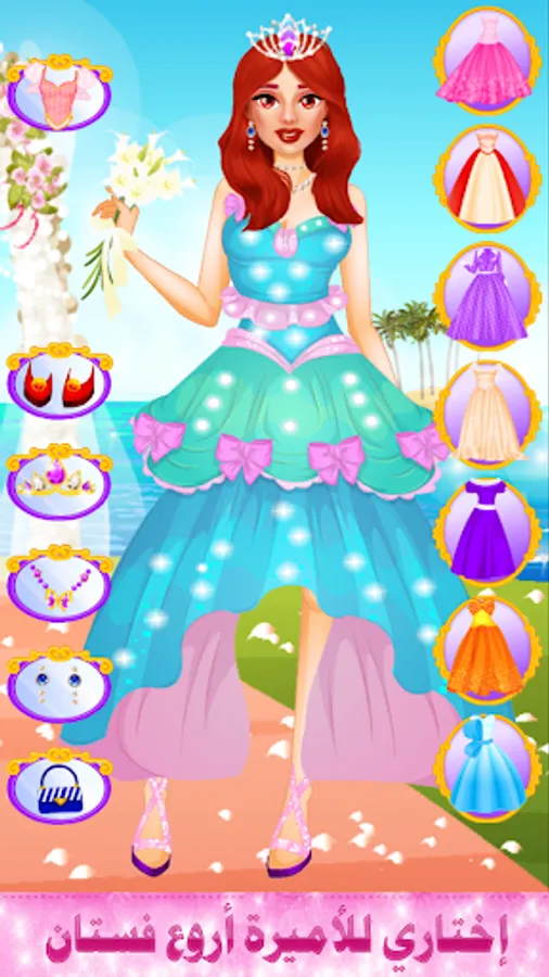 Our application also contains a dress-up stage. If your favorite type is girls’ dress-up games and fashion and wedding games, all you have to do is enter and choose a suitable bridal dress with elegant and beautiful shoes, along with a handbag for girls that will be chic in 2022, and also the jewelry in front of you that you can put on your neck. The girl wants to look more amazing and follow the new fashion style and look beautiful in the end.
