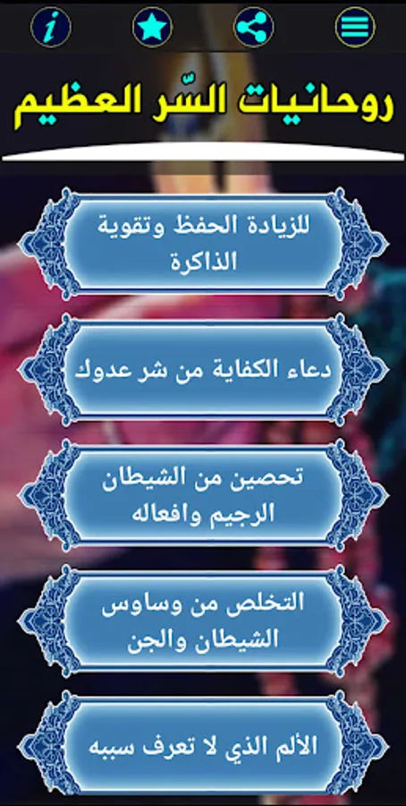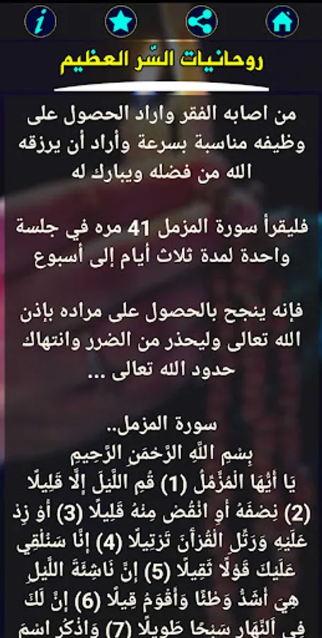 The application contains tested spirituality, which is one of the correct books in Islam, where you can solve personal problems, God Almighty, with tried and true spiritual benefits.
