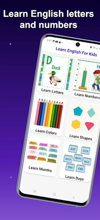 The app has a simple interface that even the smallest child can learn easly. And the app will keep your child entertained and motivate them to repeat the lessons. Your kids will love English