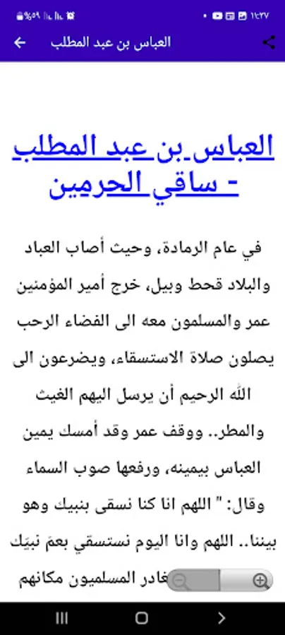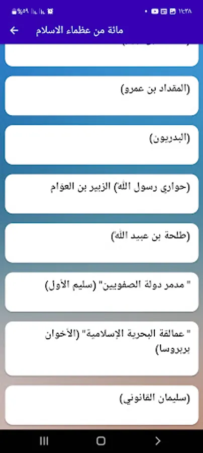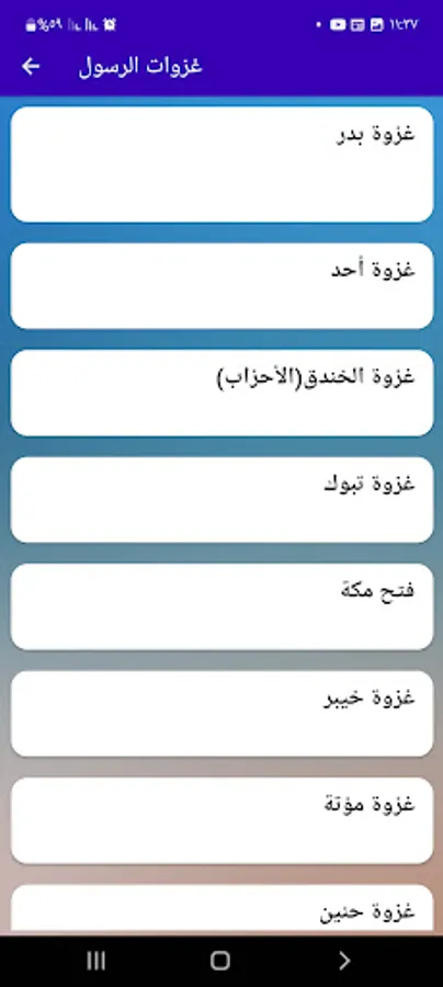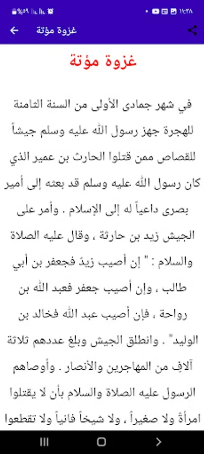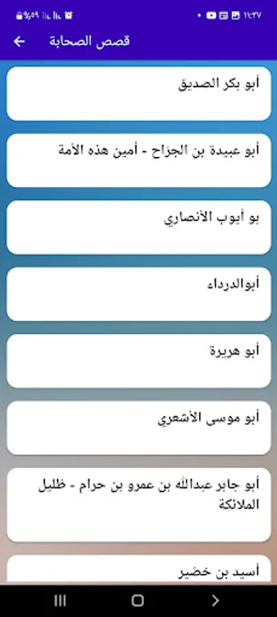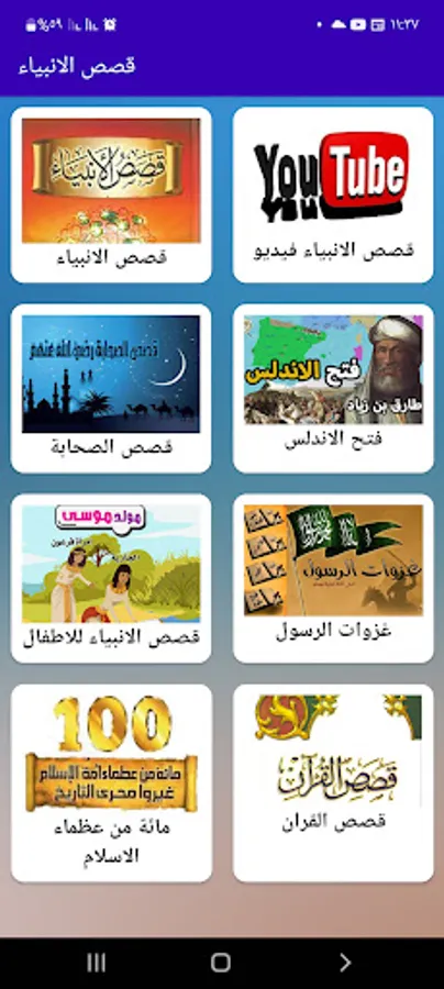 The application contains stories of the prophets, stories of Islamic history, stories of Islamic conquests, and miracles of the prophets.