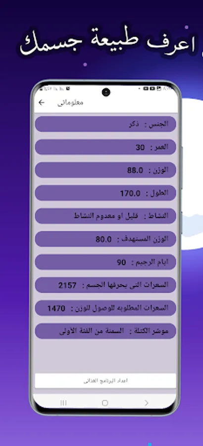The application of diet systems for weight gain contains a table of calories to know how many calories the human body needs, and through this, the person creates integrated diet programs.