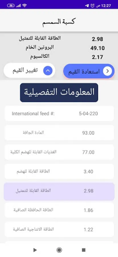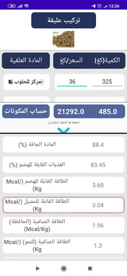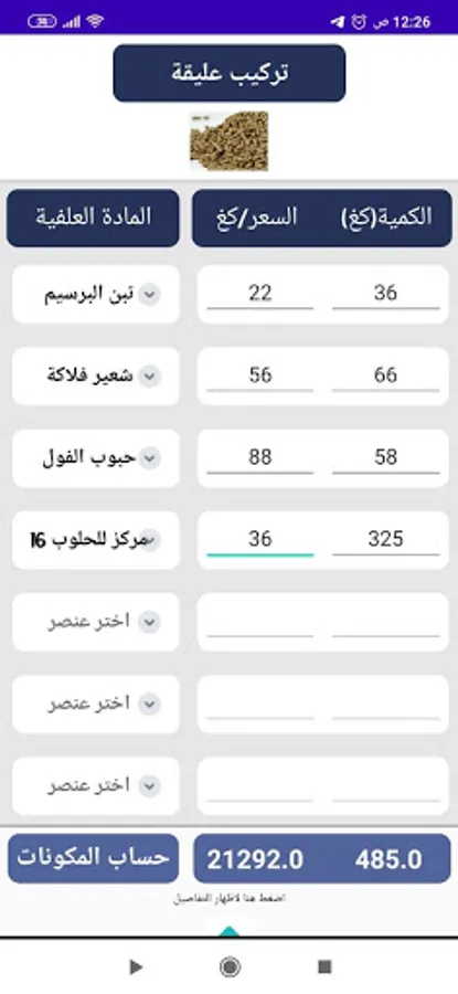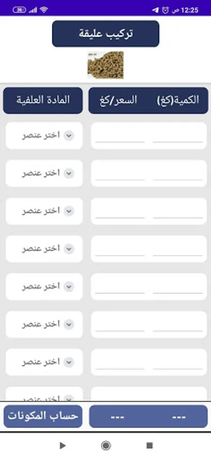 4- From the list of feed materials, you can add a new material if the user has an item that is not on the list
