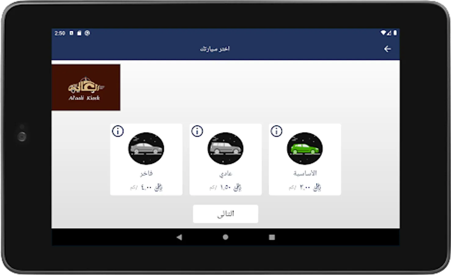 3- Choose the type of cab / taxi
