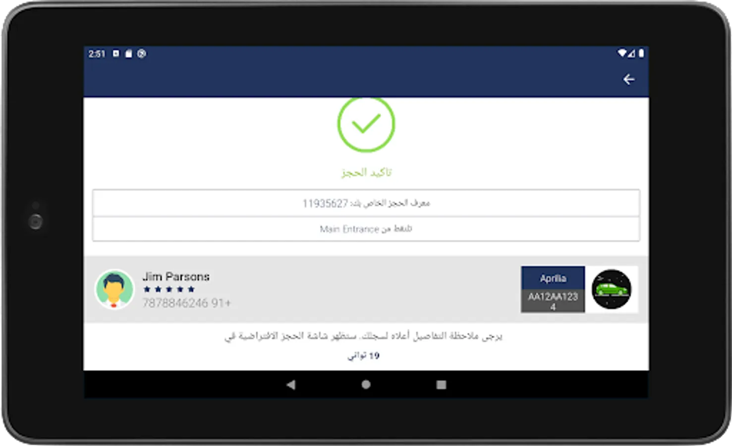 5- The booking confirmation screen will be shown to the user with the driver and vehicle details.