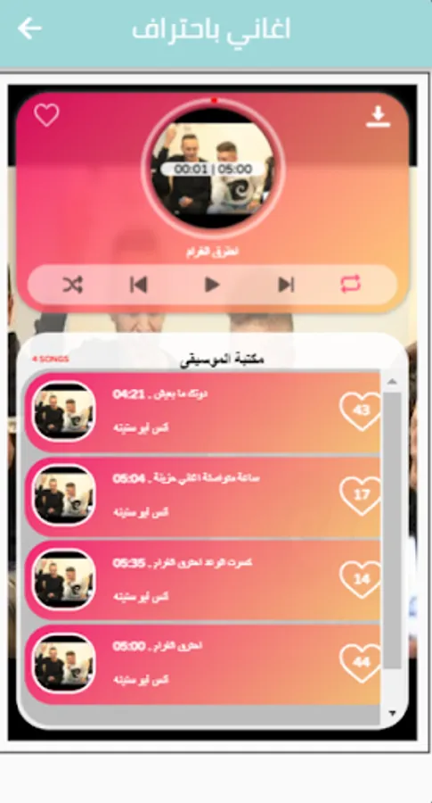 The application of Anas Abu Sininh and Uday Zagha for the first time forty songs and a continuous hour of sad classic songs.
