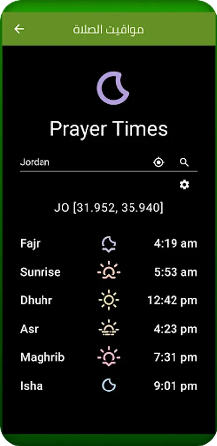 The Prayer Times application relies on accurate astronomical calculations to determine prayer times accurately, and the user can specify the method of calculating his preferred times, whether it is the method based on vision or the method based on astronomical calculations