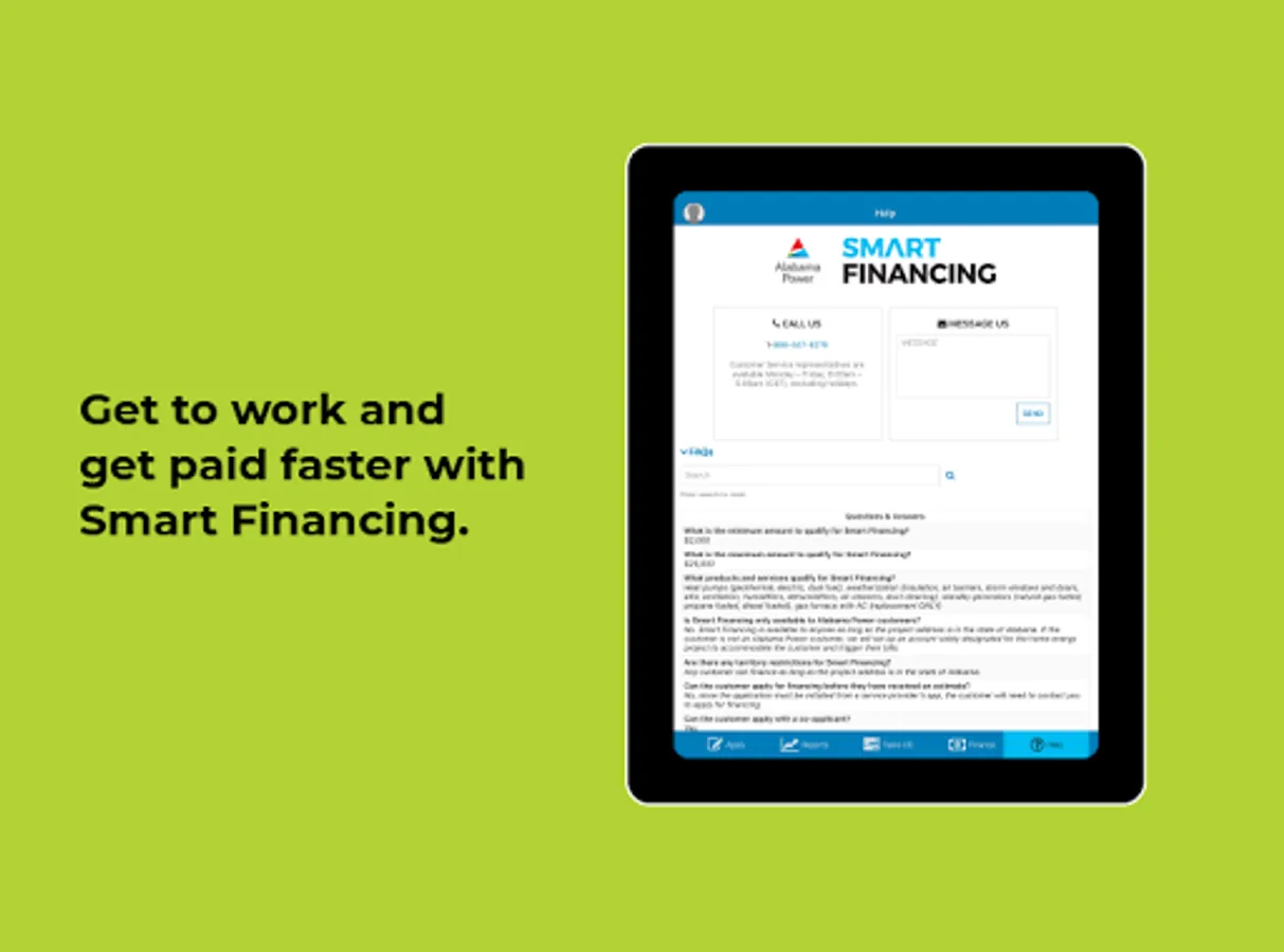 Get to work and get paid faster with Alabama Power’s Smart Financing app, designed specifically for service providers who strive to accommodate their customers’ home energy needs.