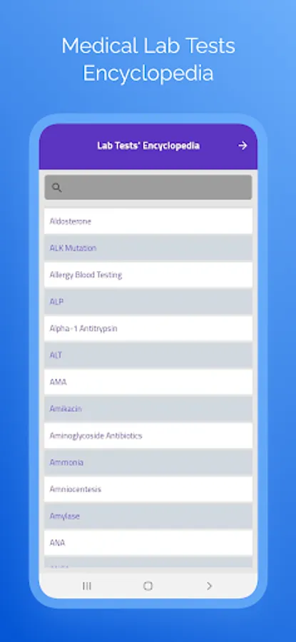 A comprehensive encyclopedia for all medical lab tests (more than 410 tests), which includes the following items for each test: