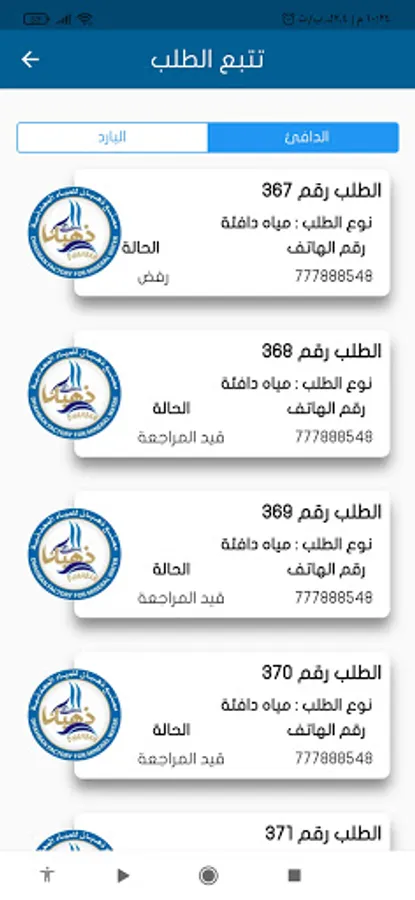 Dhahban application: The first application in the Republic of Yemen for the Dhahban Water Factory to enable us to reach all our customers to the fullest extent and provide the best price and the finest drinking water packed with ozone treatment