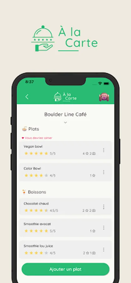 À La Carte allows you to discover and rate your favorite dishes through an ultra-personalized experience. An essential app to save time and always make the right choice when dining out.