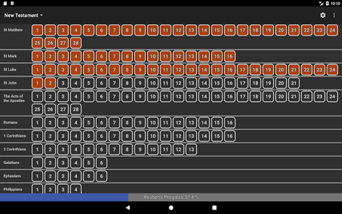 This reading chart helps you keep track of your progress as you read the Holy Bible. After you read a chapter just click on the corresponding chapter box on the chart so that you will always know where you are. This is great for tracking your reading goals.