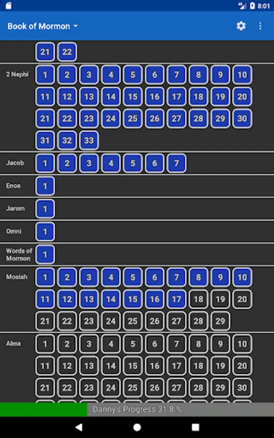 This reading chart helps you keep track of your progress as you read the scriptures. After you read a chapter just click on the corresponding chapter box on the chart so that you will always know where you are. This is great for tracking your reading goals.