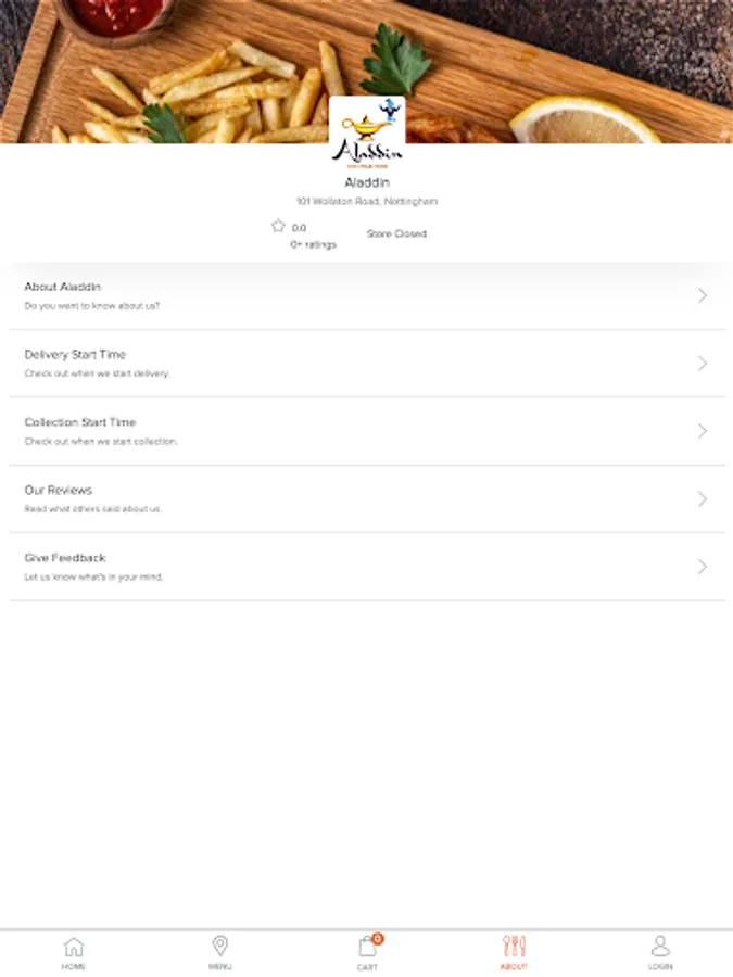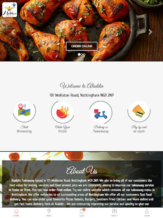 We're also available for ordering on https://aladdinonline.co.uk/storemenu and also on https://kuick.com/order/aladdin