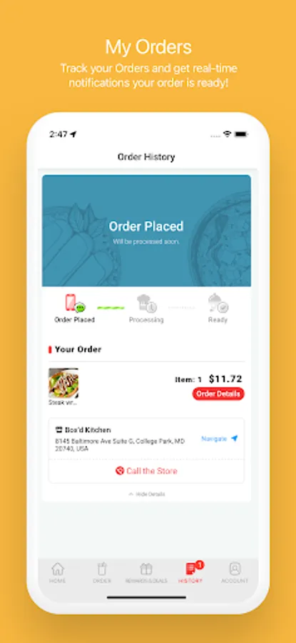 Track your Orders and get real-time notifications your order is ready!