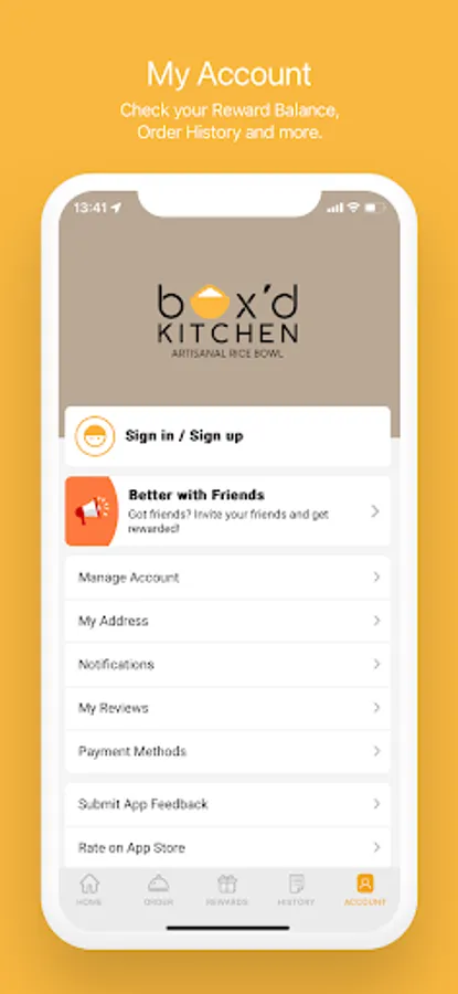 Check your Reward Balance, Order History and more.