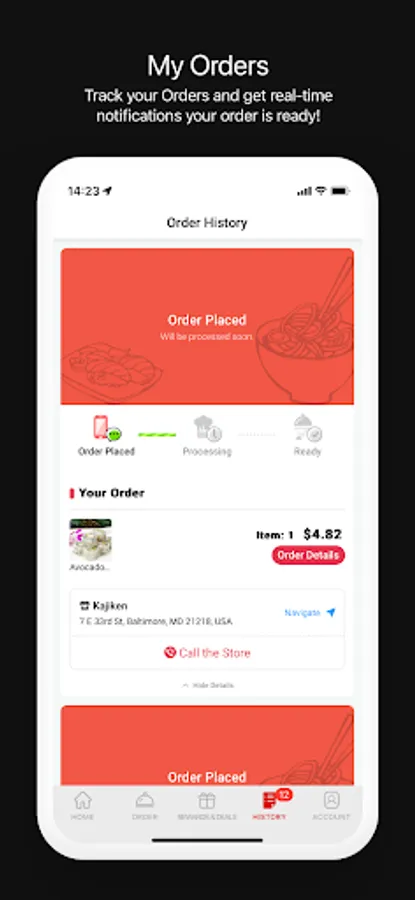 Track your Orders and get real-time notifications your order is ready!