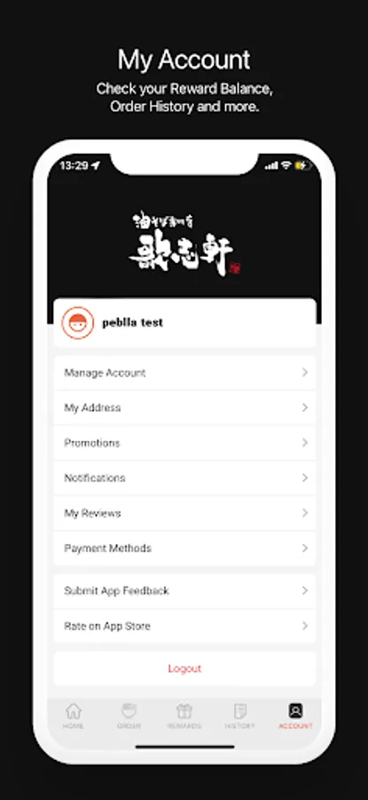 Check your Reward Balance, Order History and more.