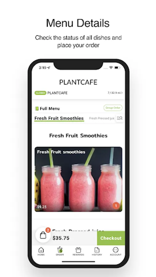 Check the status of all dishes and place your order.