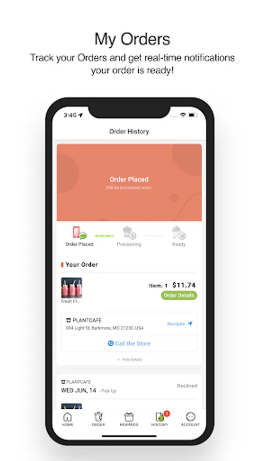 Track your Orders and get real-time notifications your order is ready!