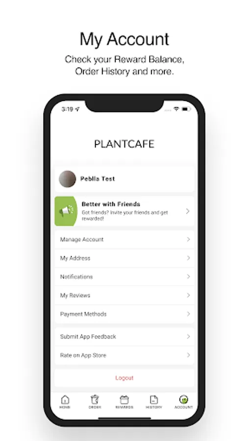 Check your Reward Balance, Order History and more.