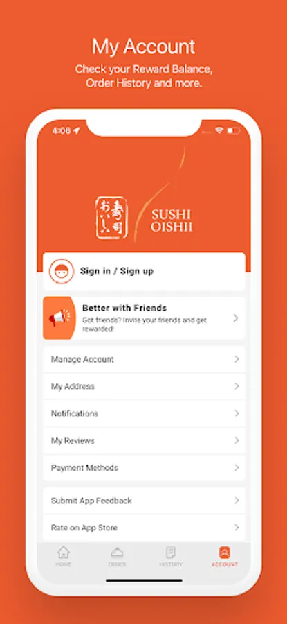 Check your Reward Balance, Order History and more.