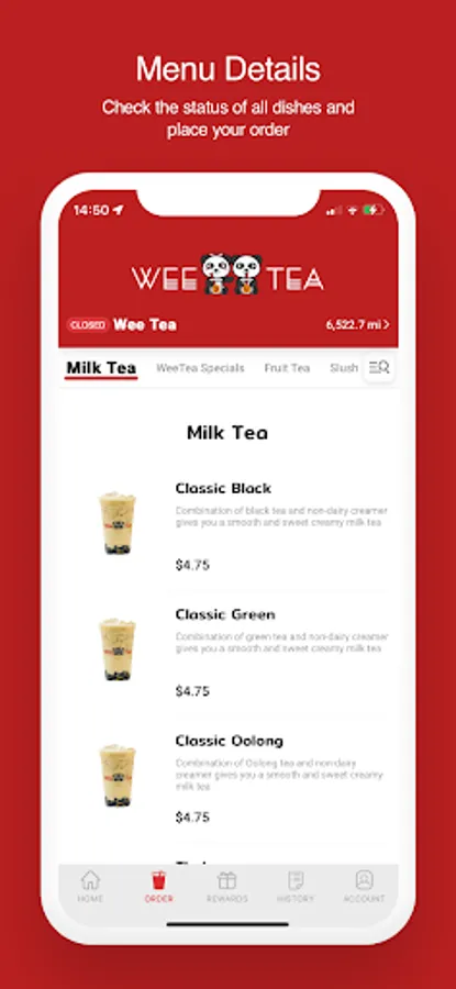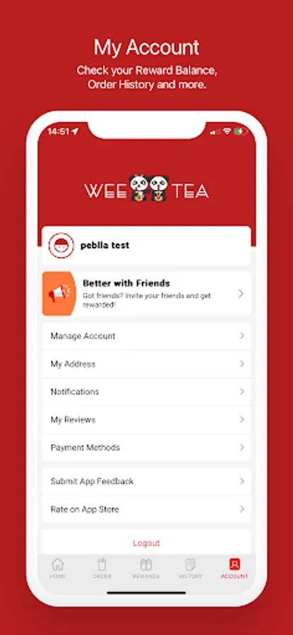 Check your Reward Balance, Order History and more.