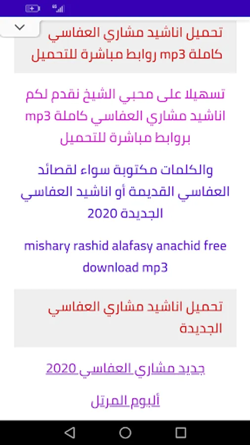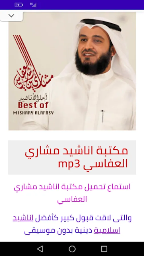 The application provides the possibility to download the complete Mishary Al-Afasy songs mp3 direct links to download without the hassle of searching on the Internet for all new Mishary Al-Afasy songs mp3