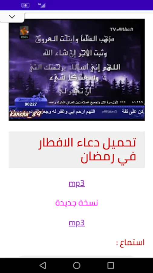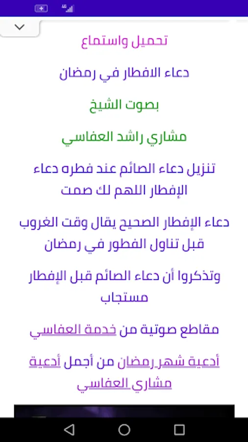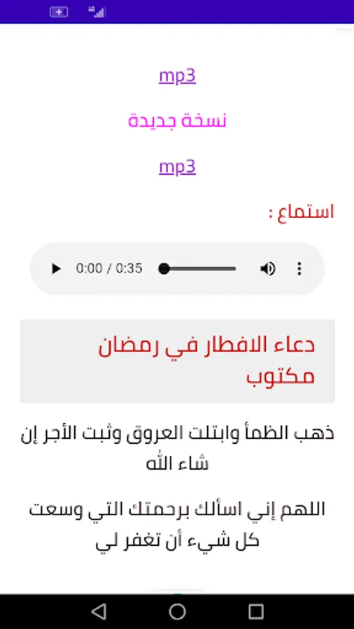 The application contains the supplication for breakfast in Ramadan, which the fasting person says when breaking his fast at sunset in the holy month of Ramadan