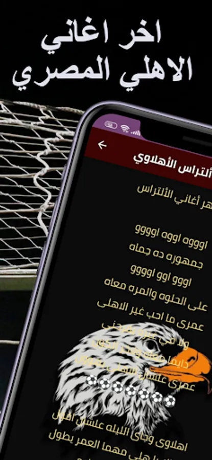 This application is considered an encyclopedia of the new, enthusiastic songs of Al-Ahly of Egypt