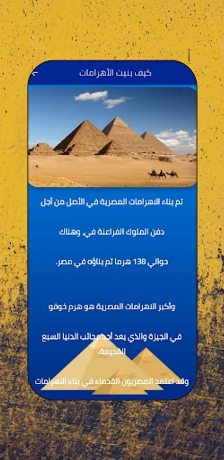 If you encounter any problem in the application "Pyramids: Egypt - Tourism", the door of communication is open to all of you. Thank you.