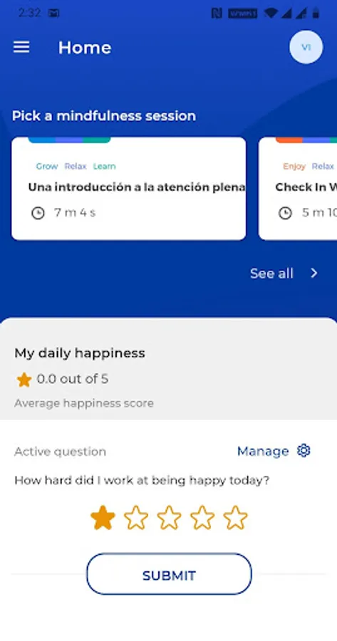 To help you learn and master the skill of happiness, every day you will be asked a "Daily Happiness Question" which allows you to reflect on how hard you've worked at being happy. Because Happiness takes effort.