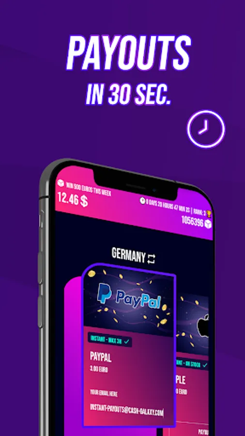 Our payouts are instant; no waiting! Receive your Cash code or PayPal payment directly.