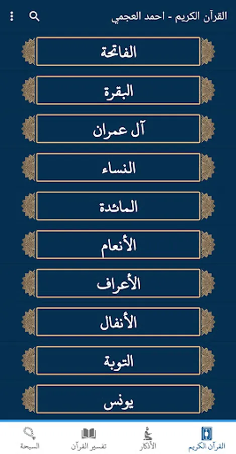 As we mentioned, the interface of the Noble Qur’an application, audio and video of Ahmed Al-Ajmi, is a simple interface that enables users, young or old, to listen to the Noble Qur’an and use the application with ease, away from complexity.