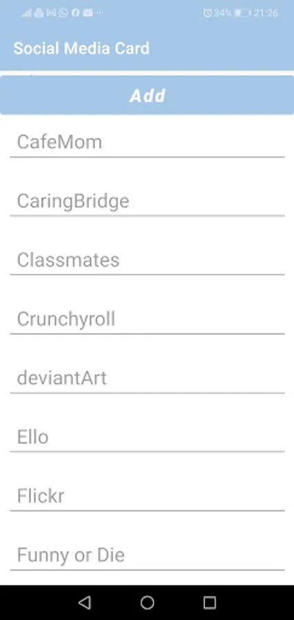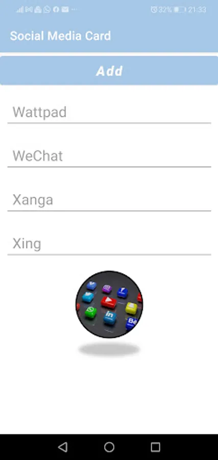 إنشئ بطاقتك للتعريف بنفسك على وسائل التواصل الاجتماعي يمكنك بواسطة هذا التطبيق تحديد عناوين وسائل التواصل الاجتماعي الخاصة بك