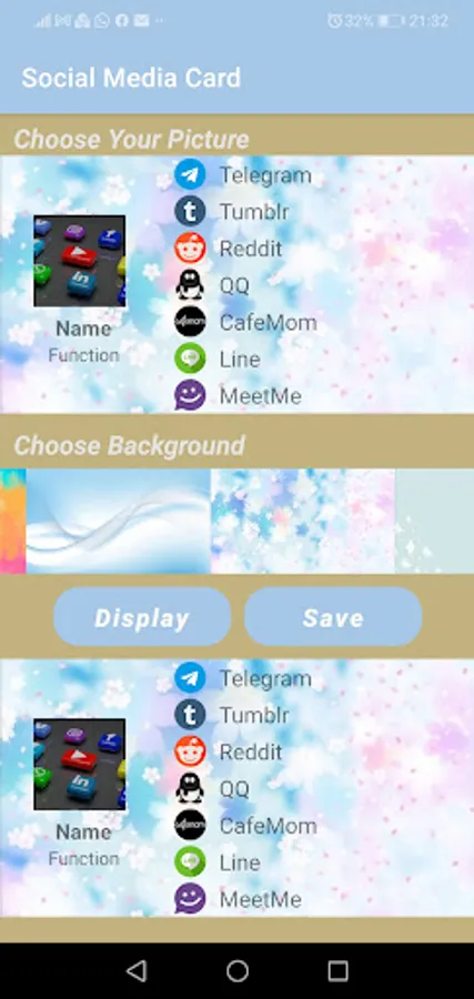 Create your card to identify yourself on social media