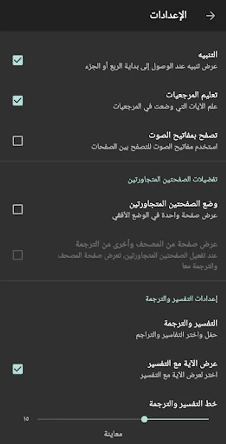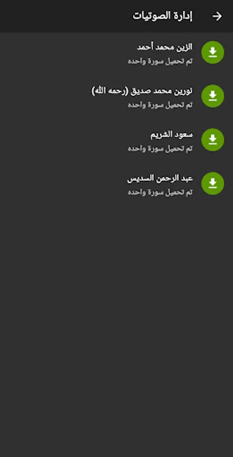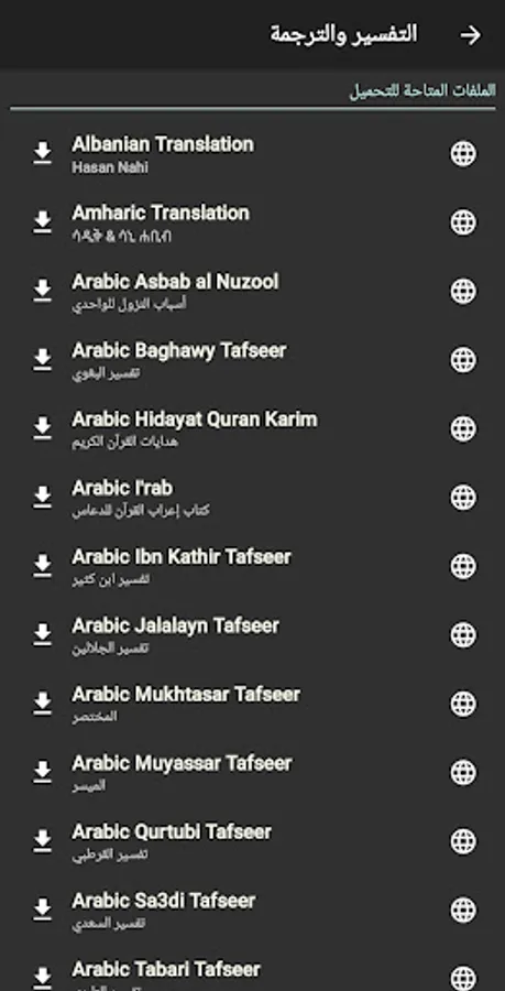- The possibility of downloading a number of interpretations, such as the interpretation of Ibn Kathir, Al-Saadi and the easy interpretation