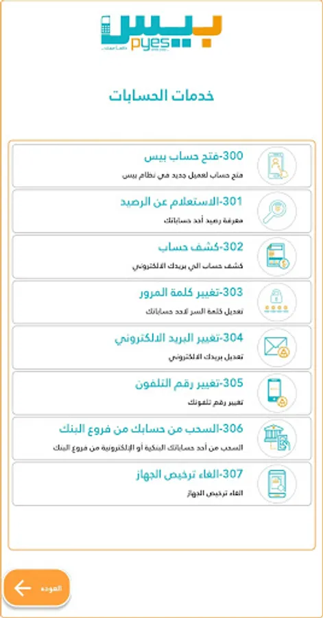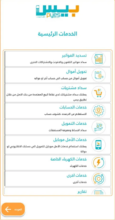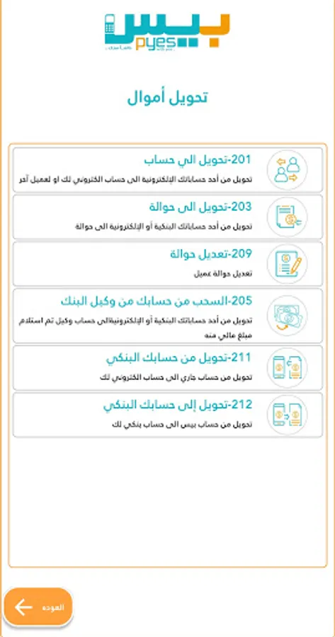 PYes App will enable customers to open a linked mobile phones numbers to carry out various banking operations transfer and withdrawals and cash conversion and repayment installments financing and receive internal and external remittances and implementation of procurement of services and products and to purchase tickets and implementation of acquisitions of Internet sites and bill payment services, fixed line and mobile services and Internet accounts.