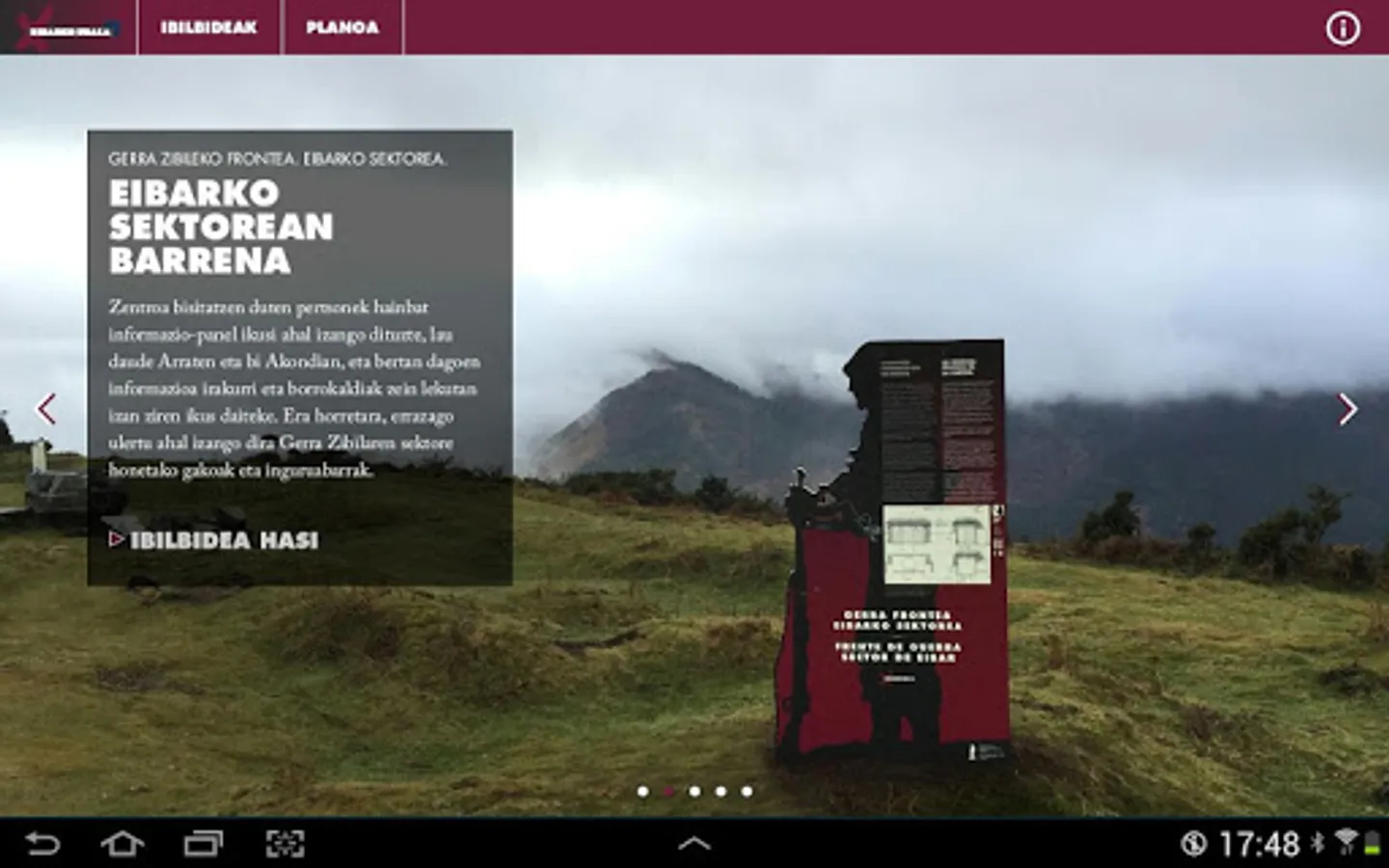 This app works without internet connection so it is recommended to download it before starting the visit. Once installed on your device, launch the application to download the content.