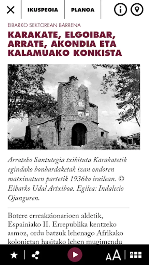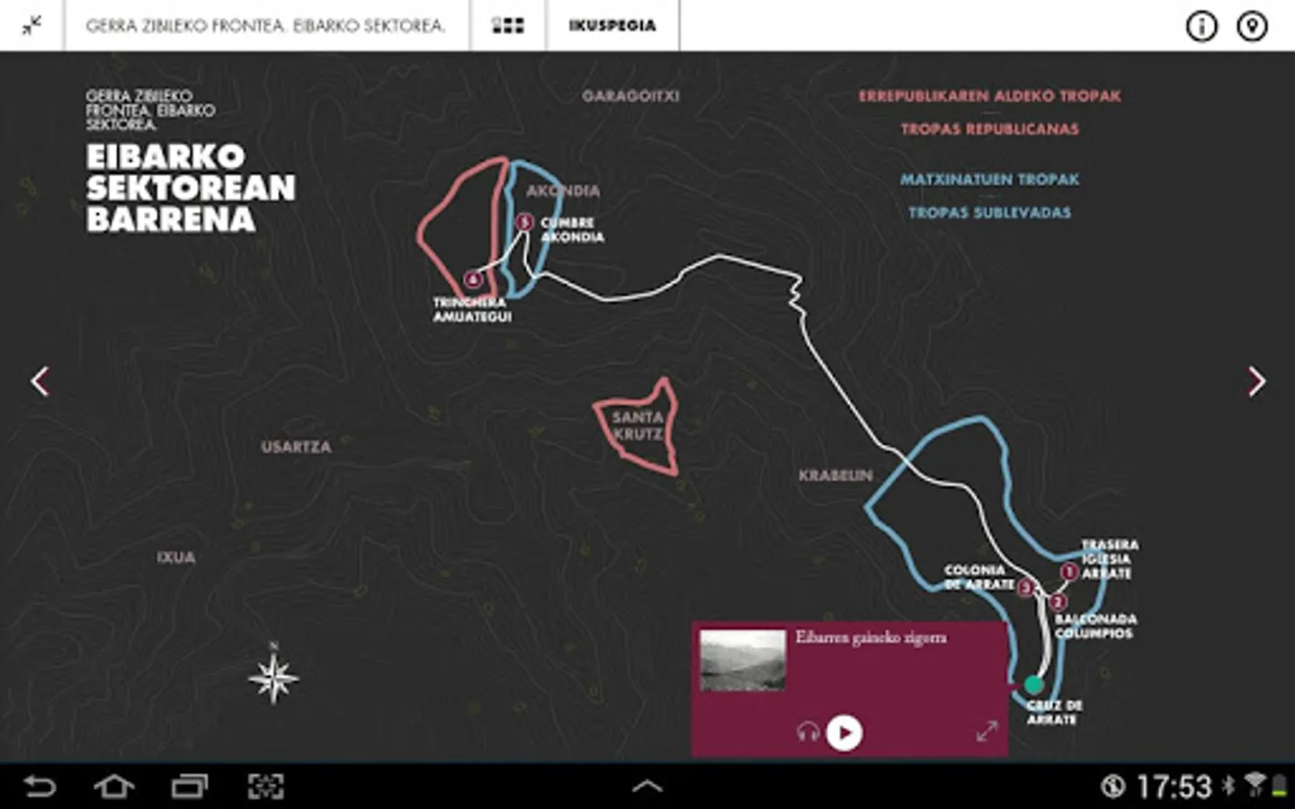 In this guide we propose a tour of the most iconic interesting parts of Arrate and the Civil War Interpretation Centre in Eibar, where you can see many of the key elements involved in the battles waged from late September 1936 until 26th April 1937, the date on which Franco’s troops entered Eibar.
