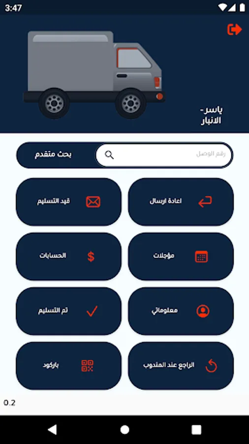 The application of the representative of the secretary for delivery. The representative can update the status of shipments, follow them up, communicate with technical support, and search for all shipments easily through the application