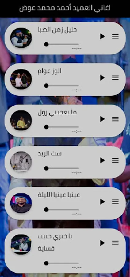 The songs of Brigadier General Ahmed Muhammad Awad for the year 2023 AD is an application of popular songs and some different songs that were established on 1/3/2023 AD. It contains 22 songs, including the songs of his participation in the Songs and Songs 2023 program. It was designed by the Mobeasy application that includes a number of features: