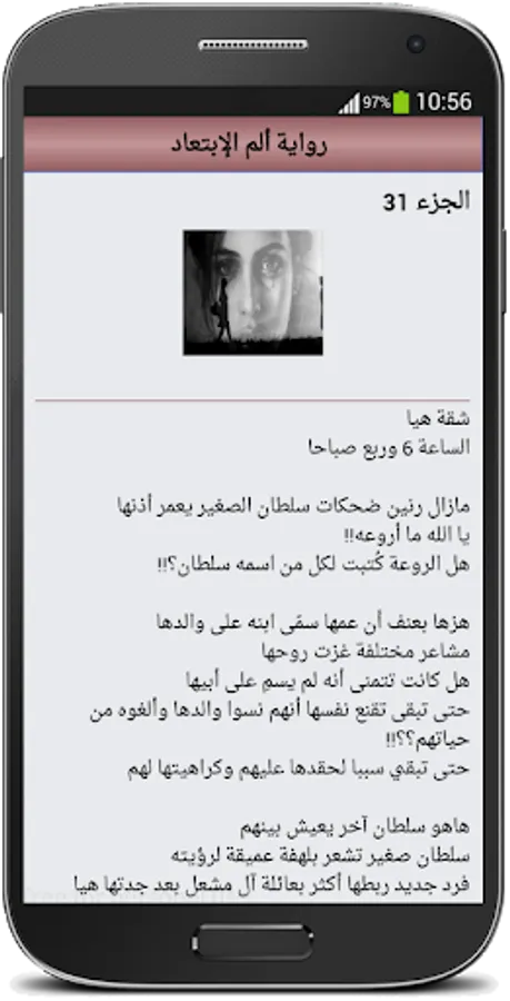 The novel of the pain of getting away is one of the most beautiful and sweet romantic novels, distinctive and interesting. The events of the story are wonderful that make you move to its world and live in its events with its heroes.